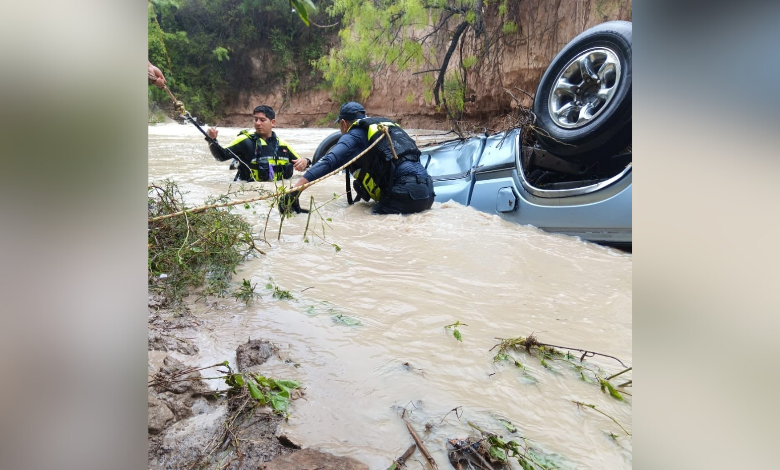 La camioneta volcó cuando el hombre intentó pasar un arroyo con mucha agua, debido a las fuertes lluvias