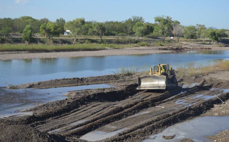 Públicas inició esta semana con los trabajos de reconstrucción del dique en el vado del río San Pedro, donde se vio maquinaria propiedad del municipio cerrando con un bordo de tierra el paso del agua debajo del puente de la carretera Meoqui- Delicias.