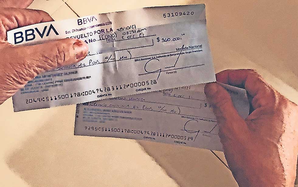 “Nos dijeron que nos iban a pagar antes de las elecciones y fue hasta el 2 de octubre de 2021 que el señor, al que fui a buscar personalmente, me dijo tajantemente una vez que le exigía el pago: mira cabrón, toma este cheque y espérate al día 28 de octubre para cobrarlo, si lo haces antes vas a tener problemas, porque te van a poner una chinga y te matan, de manera que llévatela tranquilo” Según el quejoso, en ese momento (2 de octubre) Villarreal le entregó un cheque por la cantidad total que había invertido al inicio, sin sumar nada de los supuestos intereses generados, y que tras por lo menos 5 meses de haber entregado el recurso, esperaba recibir. “Acudí al banco en la fecha que me dijo porque me dio terror que me fueran a hacer algo. Llevé el cheque a la cuenta del banco señalado y girado por la señora Alejandra Montañez de la cuenta número 0047428312. El banco rechazó el documento por insuficiencia de fondos”.